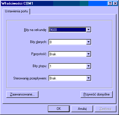 Przyjęto pewien standard jeśli chodzi o parametry transmisji przez COMy, którego trzeba sie trzymać: