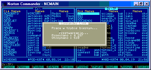 Mam złą wiadomość dla użytkowników win2000/XP - DOSowe programy takie jak Norton Commander czy InterLnk nie będą poprawnie pracować w tych systemach. Jeśli chcesz połączyć komputer pracujący pod DOSem z kompem z win2000/XP, masz do dyspozycji jedynie terminale i "Bezpośrednie Połączenie Kablowe". Jedynym znanym mi programem umożliwiającym prostą wymianę plików pod Windowsami jest Windows Commander. Jeśli jego prostota okaże się niewystarczająca proponuję zestawić Bezpośrednie połączenie kablowe i skorzystać z opcji udostępniania plików.